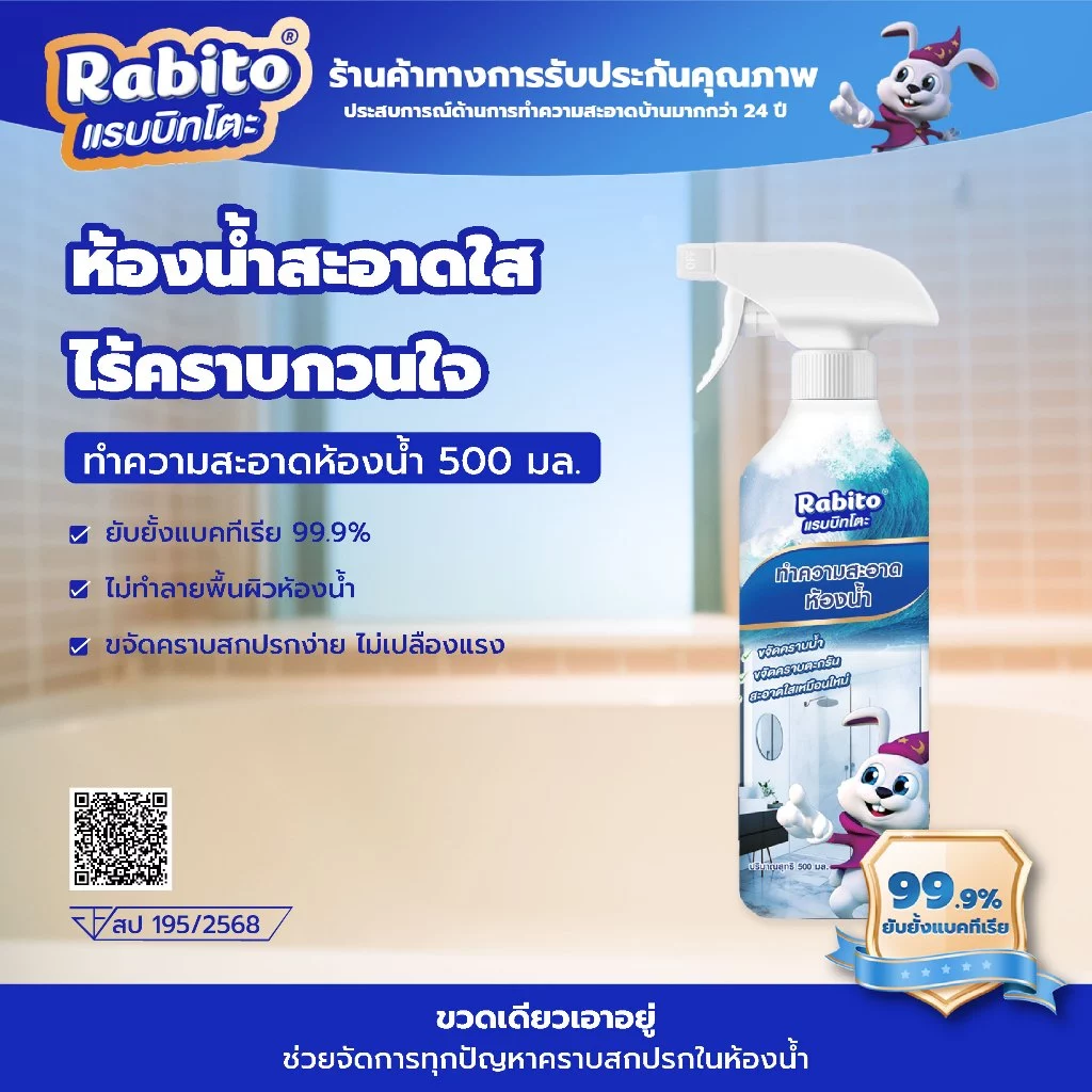 แนะนำ สินค้าออนไลน์ขายดี Rabito น้ำยาขจัดคราบห้องน้ำและสุขภัณฑ์ ขจัดคราบสกปรก ล้างห้องน้ำ ทำความสะอาด คราบในร่องกระเบื้อง 500มล. คุณสมบัติที่น่าสนใจ ช่วยขจัดคราบสกปรกได้หลายพื้นผิวในห้องน้ำ เช่น พื้น ผนัง โถ สุขภัณฑ์ อ่างล้างหน้า ก๊อกน้ำสแตนเลส เหมาะสำหรับคราบสกปรกทั่วไปในห้องน้ำ มาพร้อมกลิ่นหอม สบาย จมูก สามารถขจัดคราบสกปรก