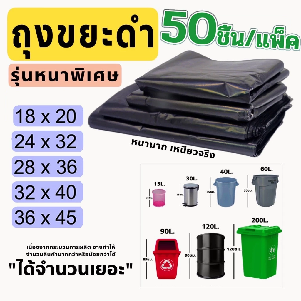 แนะนำสินค้าขายดี ถุงขยะดำ รายละเอียดของสินค้าที่น่าสนใจ ถุงขยะมีลักษณะหนา เหนียวพิเศษ ผลิตด้วยเครื่องจักรมาตรฐานทำให้มีคุณภาพสูง กันการรั่ว การขาดได้ดี สามารถใช้งานหนักได้ ผลิตด้วย HDPE เกรด A การันตีคุณภาพ มีหลายขนาดให้เลือกตามการใช้งาน